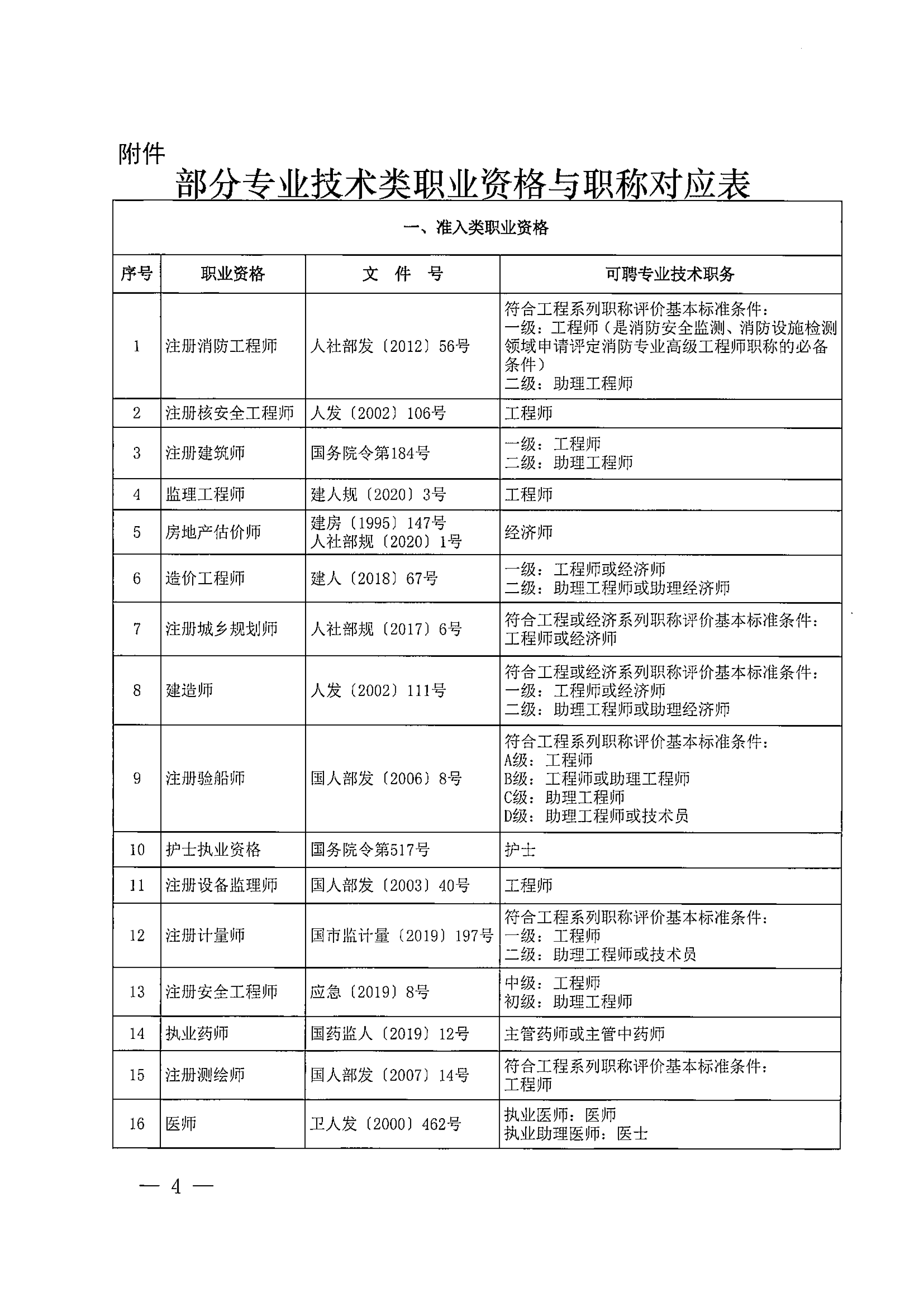 附件:部分專(zhuān)業(yè)技術(shù)類(lèi)職業(yè)資格與職稱(chēng)對(duì)應(yīng)表