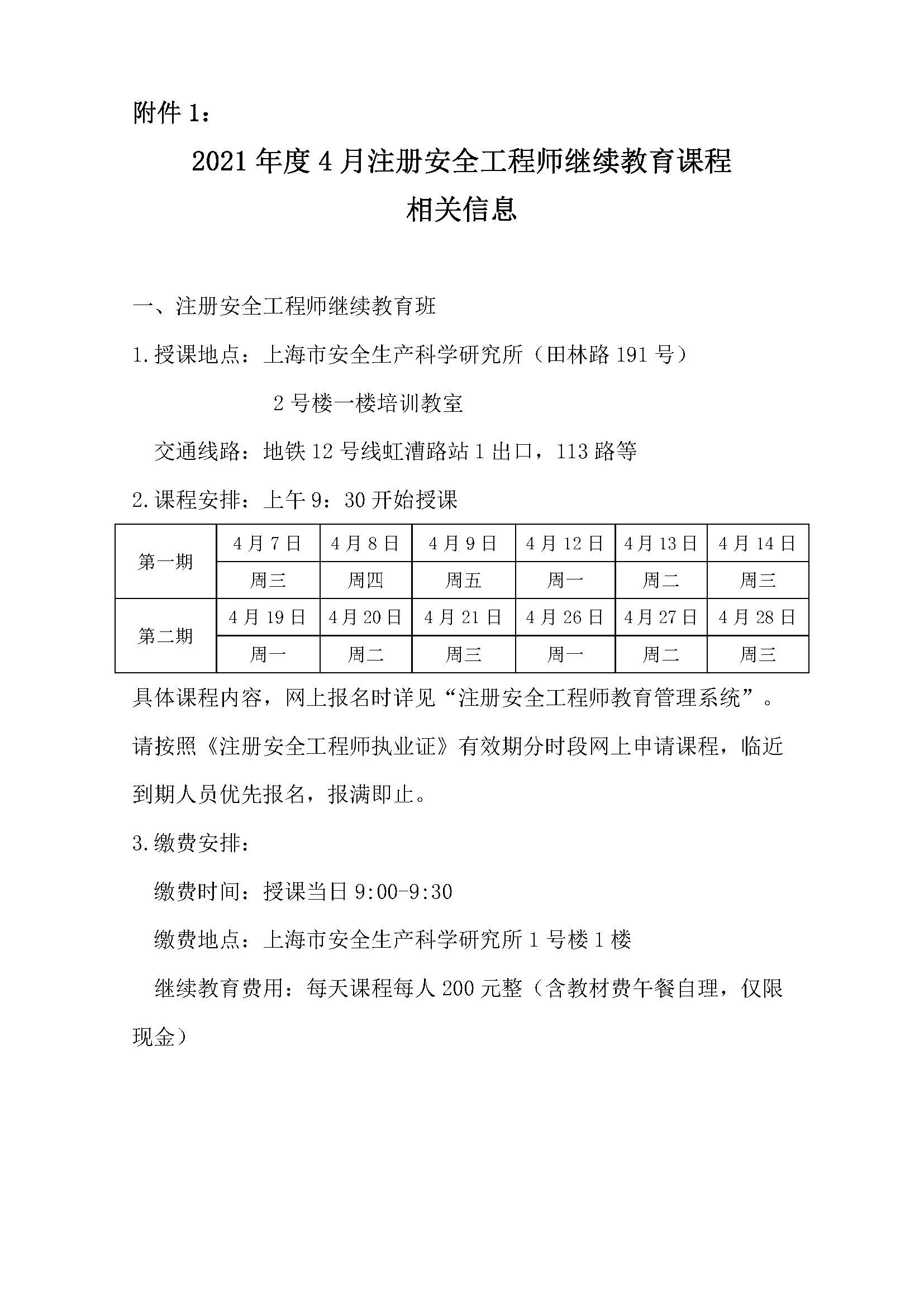 附件1: 2021年度4月注冊安全工程師繼續(xù)教育課程相關信息