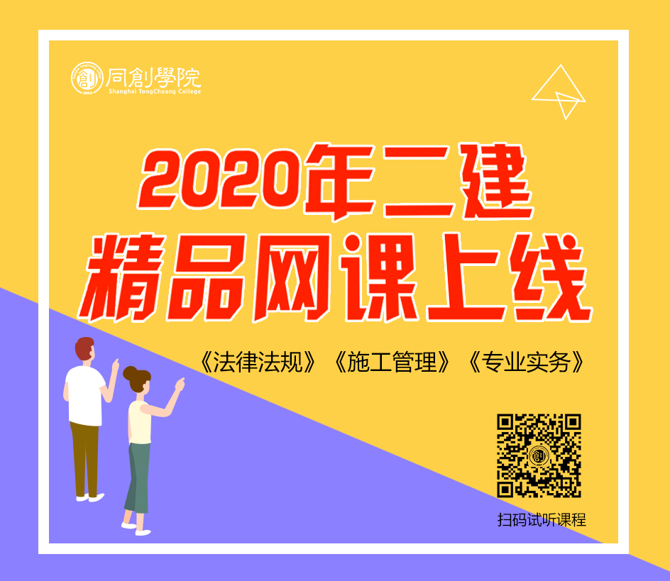 同創(chuàng)學(xué)院2020年二級(jí)建造師報(bào)名火熱進(jìn)行中,歡迎咨詢報(bào)考哦~