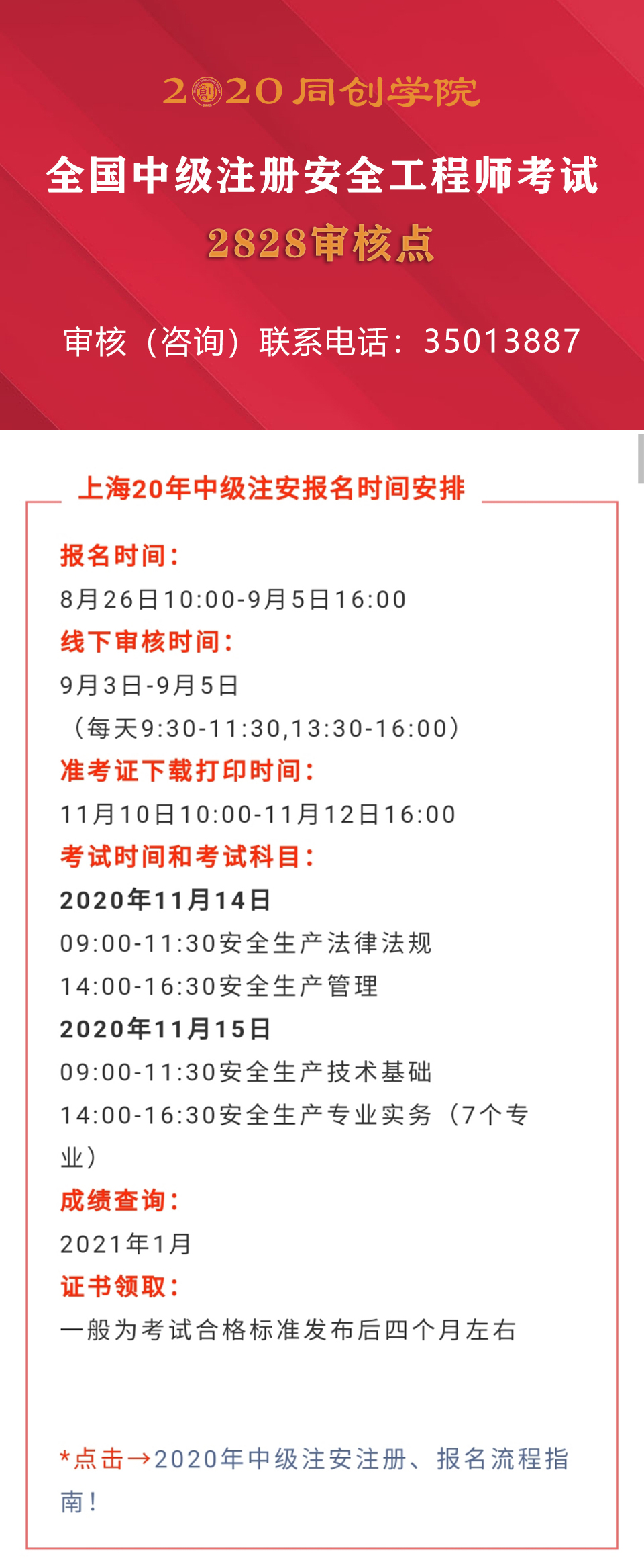 上海2020年中級(jí)注安今天開始報(bào)名,需要到現(xiàn)場(chǎng)審核的考生,記得收藏這份審核流程指南,提前了解做好準(zhǔn)備!