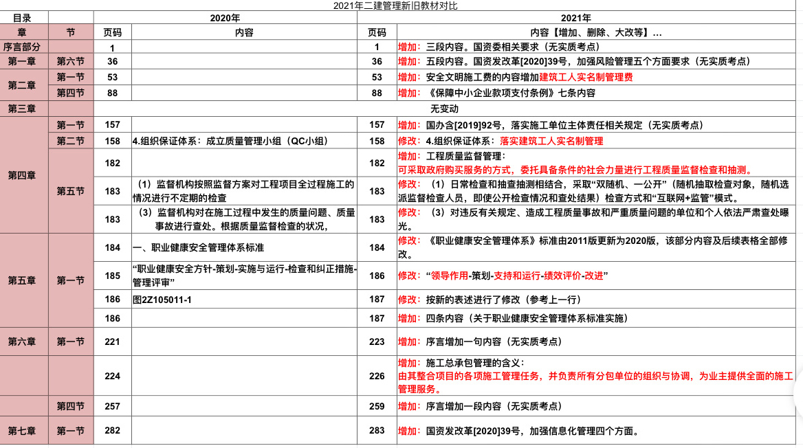 2021年二級建造師教材已開始預(yù)售,各位同學(xué)都很關(guān)心2021年二級建造師教材和2020教材變動會不會很大。同創(chuàng)學(xué)院整理了2021年二級建造師部分教材的變化,一起來看吧!