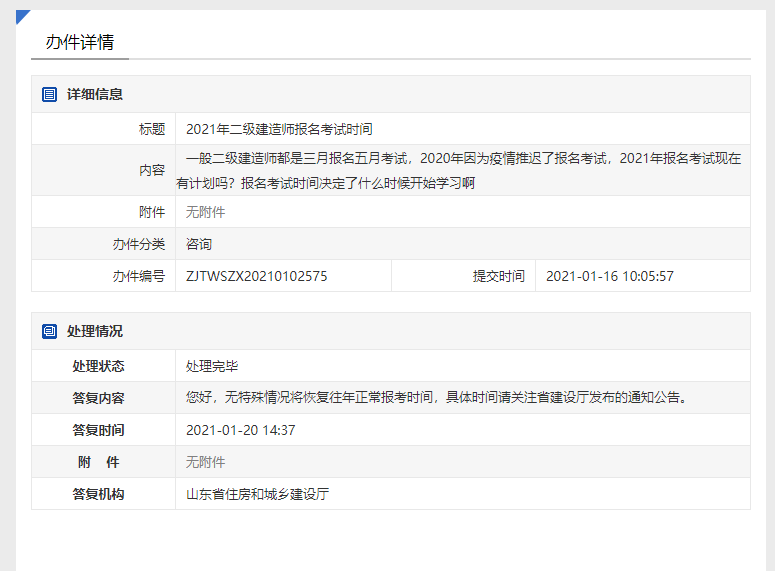 近日,山東住建廳回復關于“2021年二級建造師報名考試時間”的問題中,明確指出“無特殊情況將恢復往年正常報考時間,具體時間請關注省建設廳發(fā)布的通知公告。